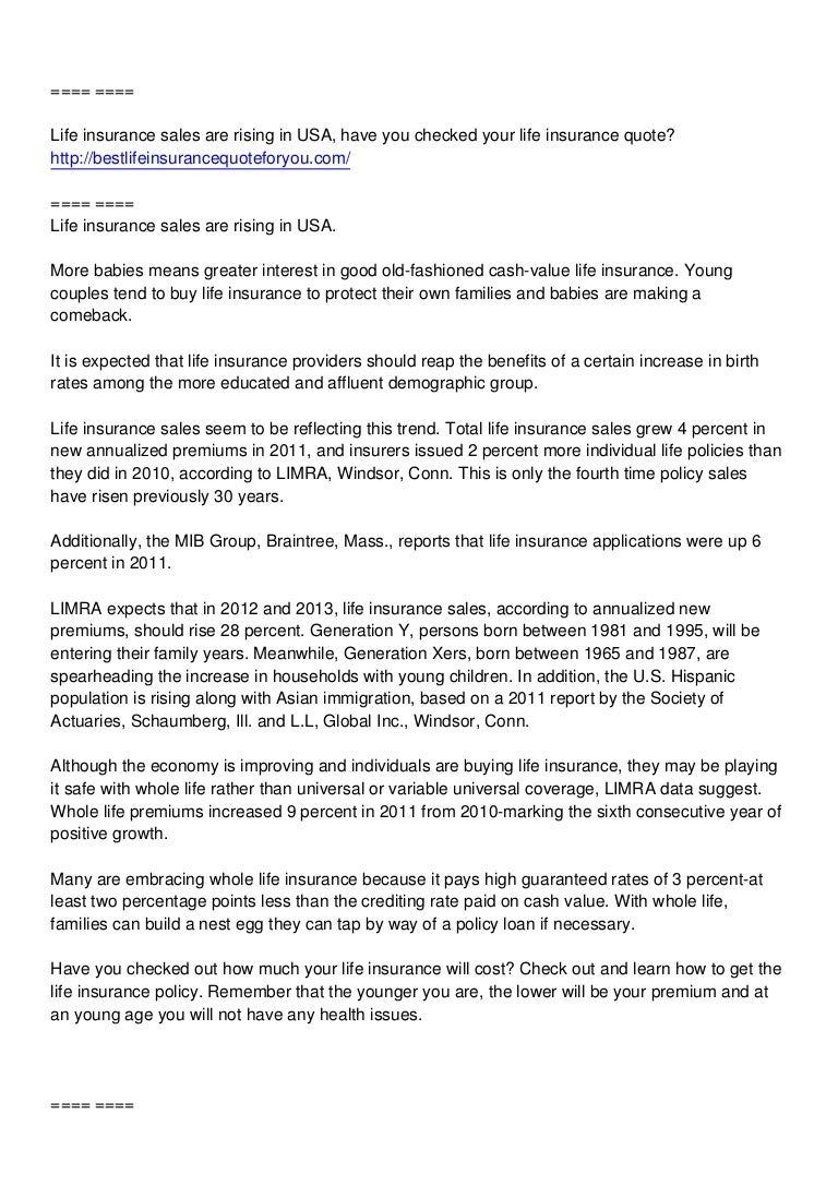 Life Insurance Sales Are Rising In Usa Have You Checked Your Life In