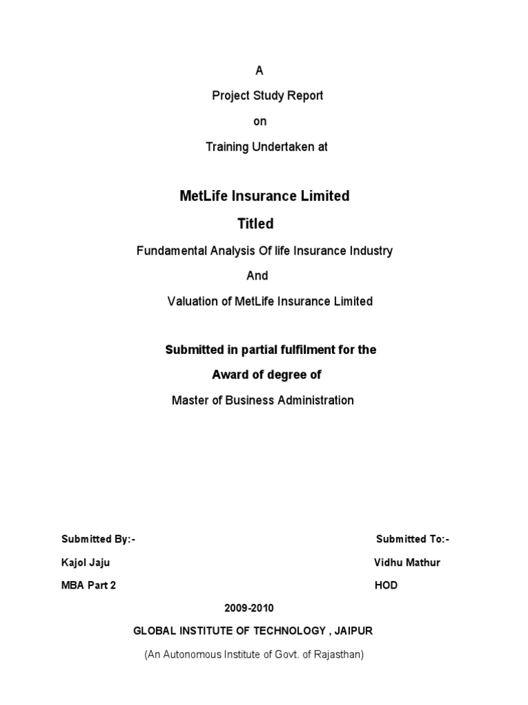 Summer Traning Report On Metlife