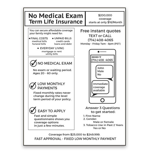 Black White 1 Page Fax Sales Sheet For No Exam Life